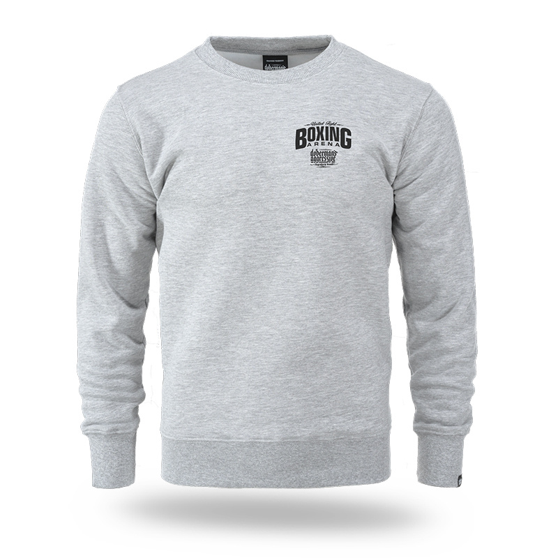 Model with a sporty graphic print on the back, depicting clenched MMA gloves and the inscription “Boxing Arena”. In the background, there are smaller inscriptions: MMA, K1, KICKBOXING, BOXING. A smaller print referring to the main motif is placed on the chest. Comfortable cut made from high-quality cotton. Model designed for combat sports practitioners.