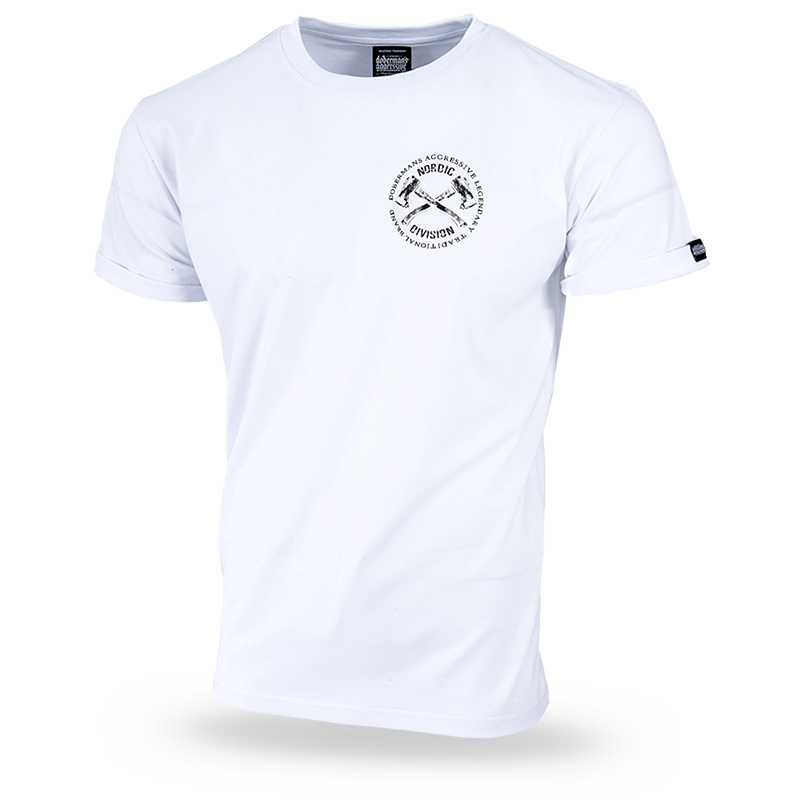 Cut of T-shirts is standard, the composition of the material is 100% cotton with a weight of 200 g. Large print in a form of a circle. The model contains the name of the brand, two crossed axes and a "Nordic Division" inscription. On the left chest side there is the same print as on the back applied in a smaller format.