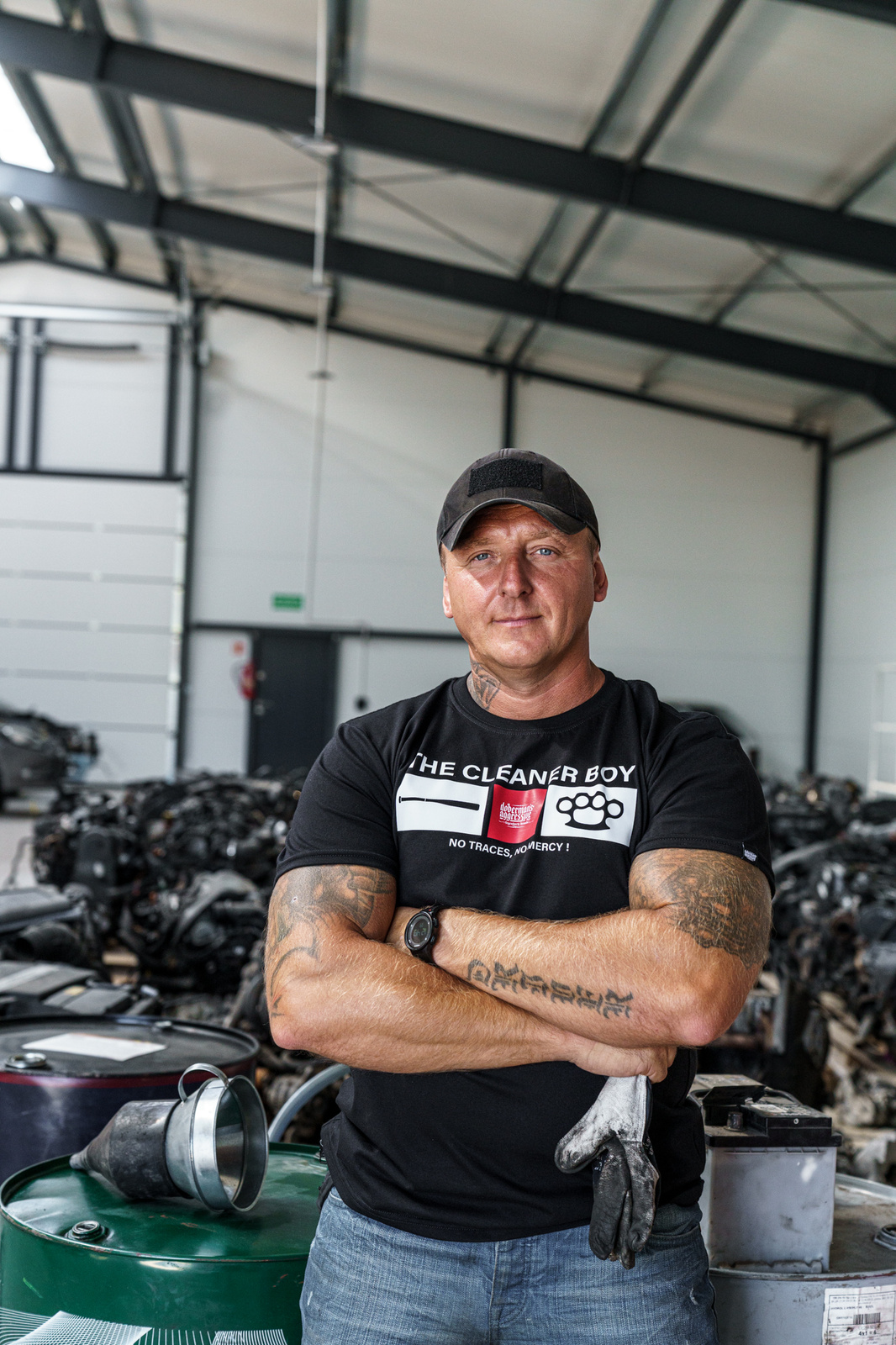 In the center, there is a print with the inscription "THE CLEANER BOY" and graphics showing a bat, the brand logo, and brass knuckles. Below, the slogan: "NO TRACES, NO MERCY!". The product is made of high-quality cotton, ensuring wearing comfort.
