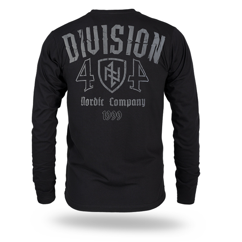 Model with a large print on the back featuring the inscription "Division 404" and a shield with a symbol, emphasizing the brand's distinctive style. On the front, there is a smaller print repeating elements from the back. Additionally, the back features a smaller "Nordic Company" inscription. The product is made of high-quality cotton, ensuring comfort and durability.
