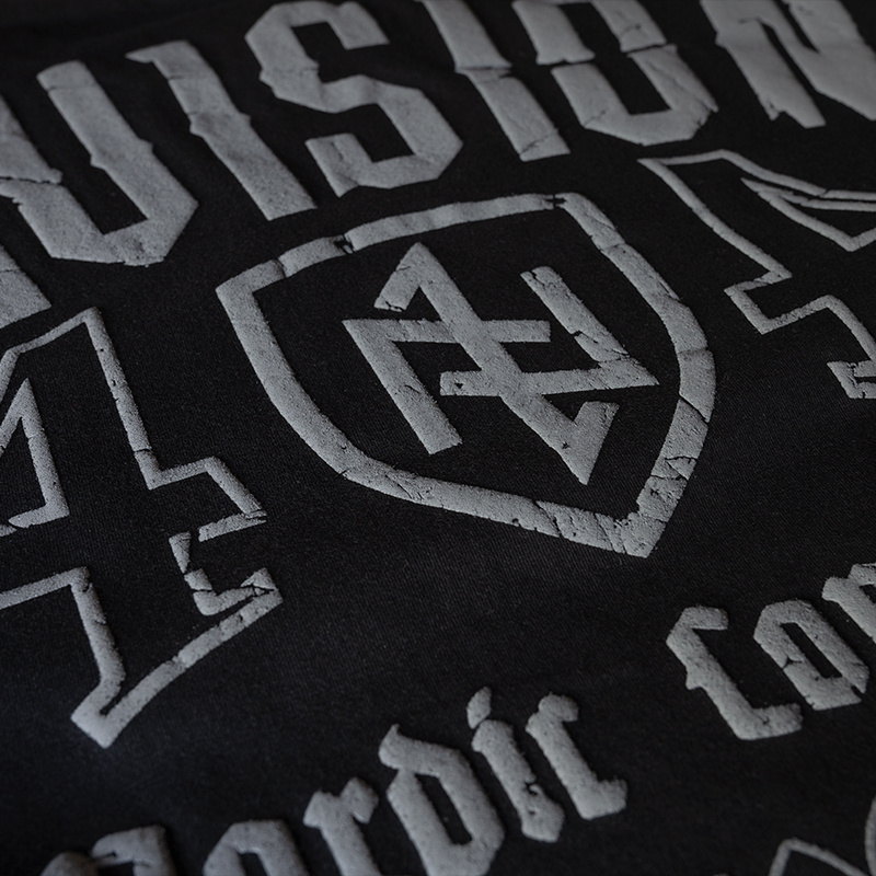 Model with a large print on the back featuring the inscription "Division 404" and a shield with a symbol, emphasizing the brand's distinctive style. On the front, there is a smaller print repeating elements from the back. Additionally, the back features a smaller "Nordic Company" inscription. The product is made of high-quality cotton, ensuring comfort and durability.