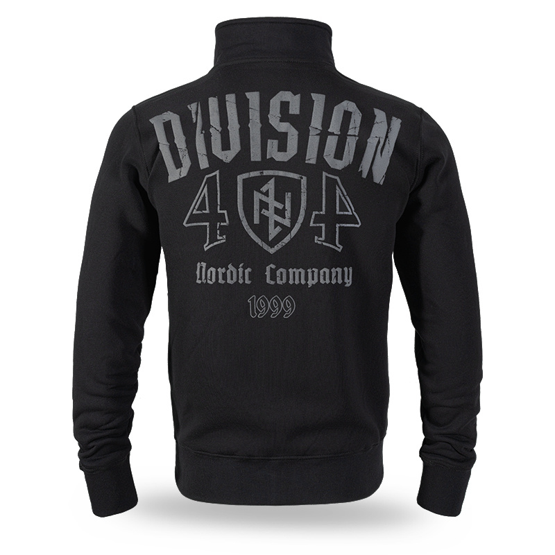 Model with a large print on the back featuring the inscription "Division 404" and a shield with a symbol, emphasizing the brand's distinctive style. On the front, there is a smaller print repeating elements from the back. Additionally, the back features a smaller "Nordic Company" inscription. The product is made of high-quality cotton, ensuring comfort and durability.