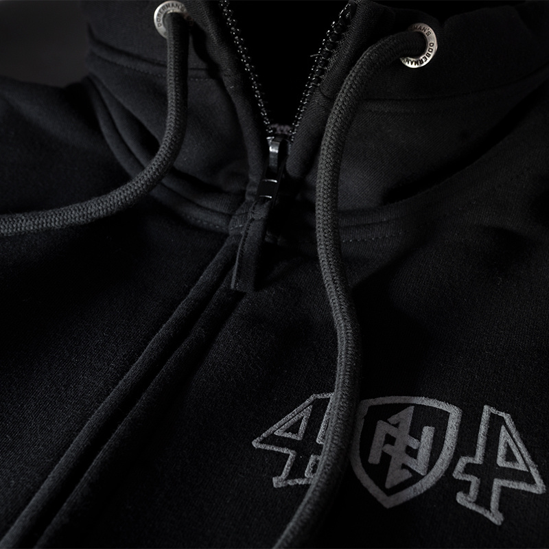 Model with a large print on the back featuring the inscription "Division 404" and a shield with a symbol, emphasizing the brand's distinctive style. On the front, there is a smaller print repeating elements from the back. Additionally, the back features a smaller "Nordic Company" inscription. The product is made of high-quality cotton, ensuring comfort and durability.