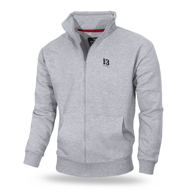 - A zipped sweatshirt with a stand-up collar perfectly protecting the neck.