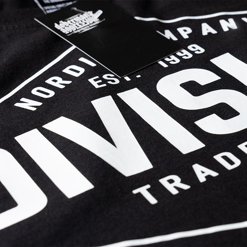A large vintage-style print on the chest featuring the “Division” name and “Nordic Company Trademark” slogan. Made of high-quality cotton, soft to the touch and durable in use. The print was applied using the screen printing method.