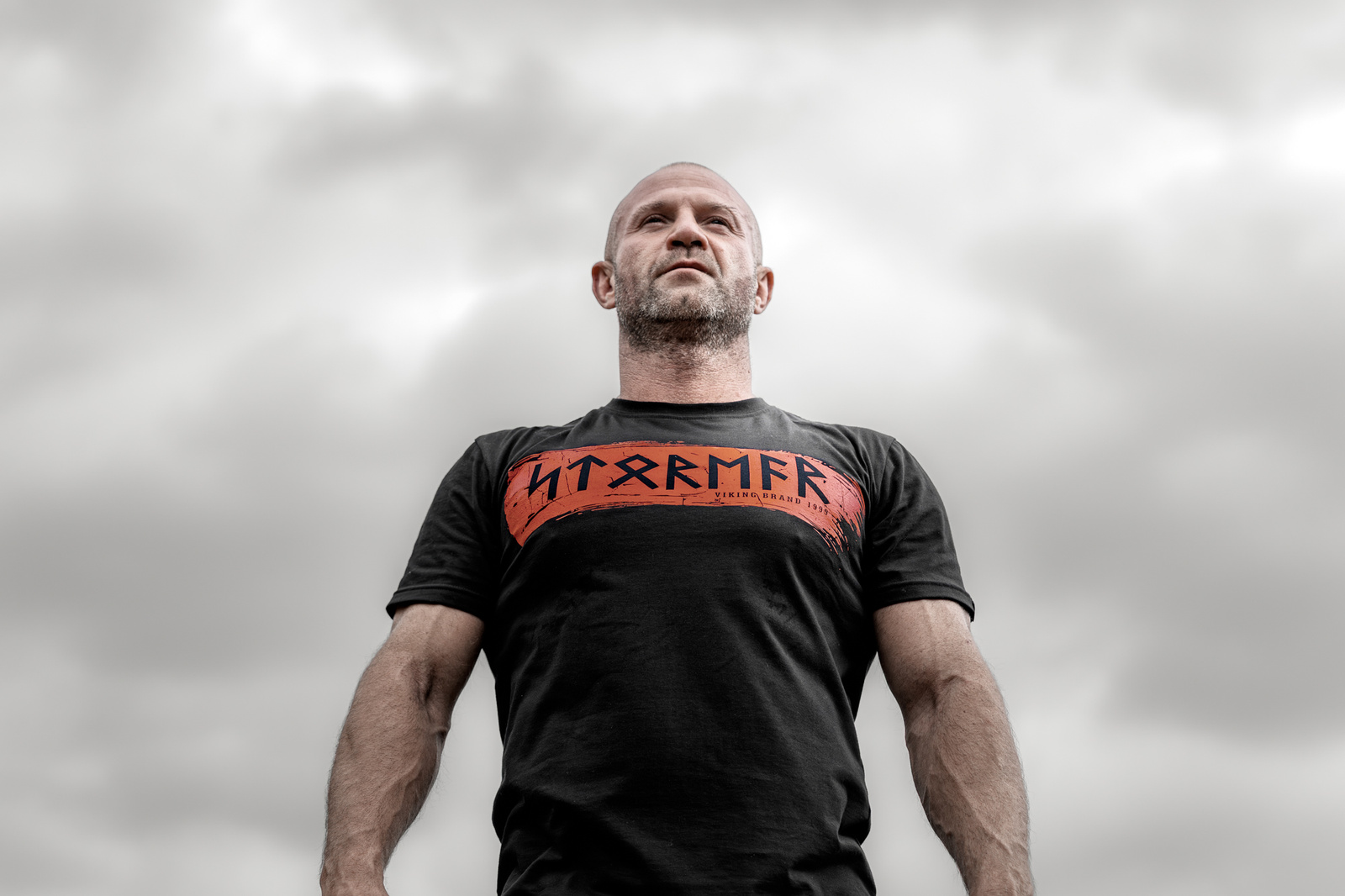 Made of high-quality cotton. The chest features a large print with a runic-style inscription – STORMER – VIKING BRAND 1999. A classic cut T-shirt, suitable for everyday wear.