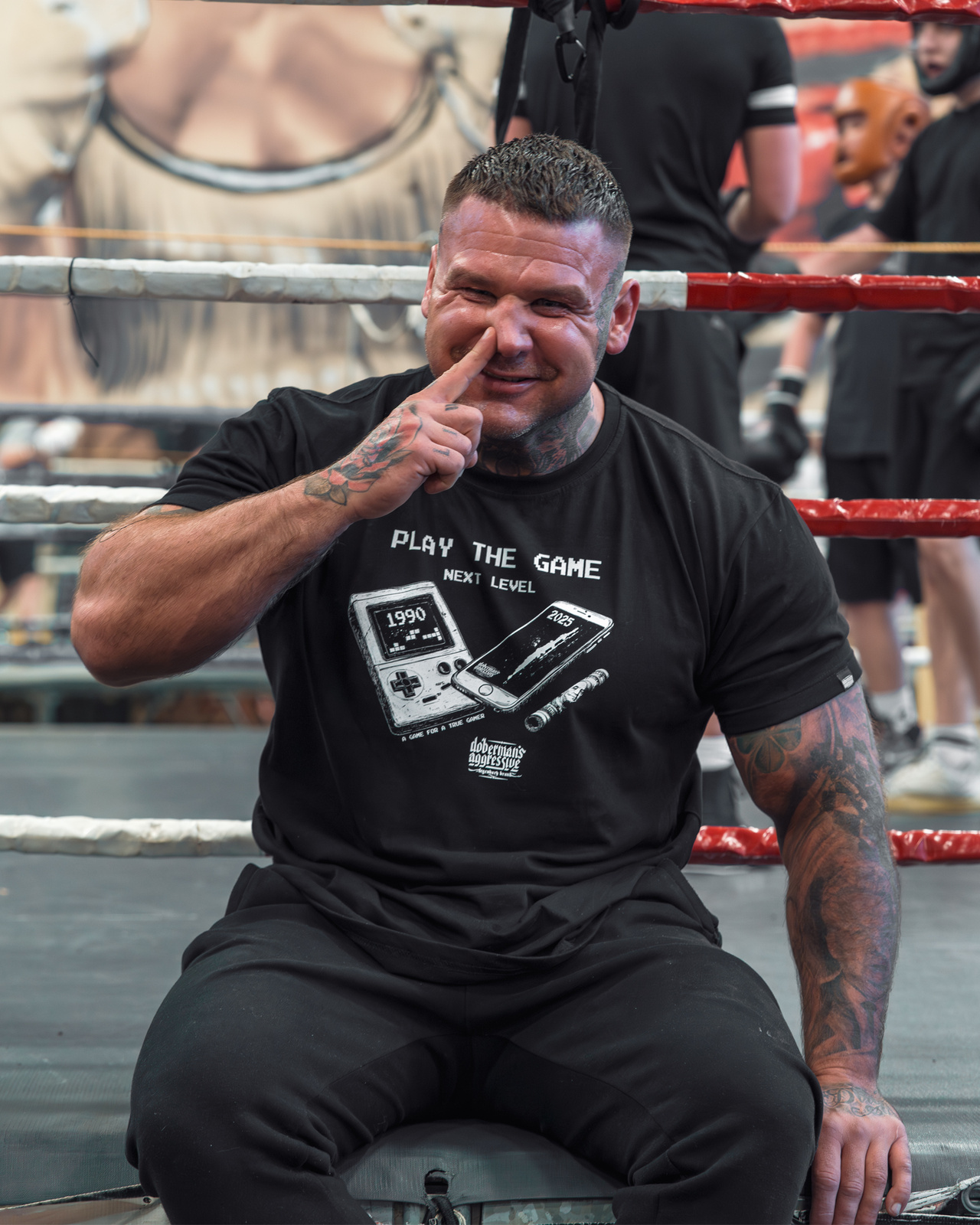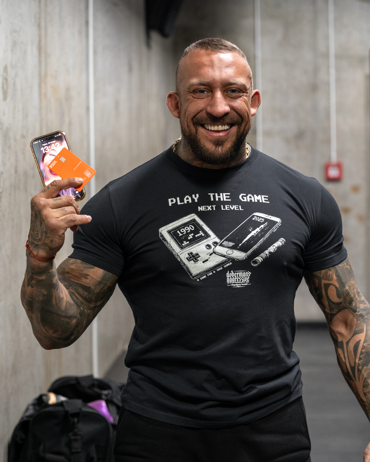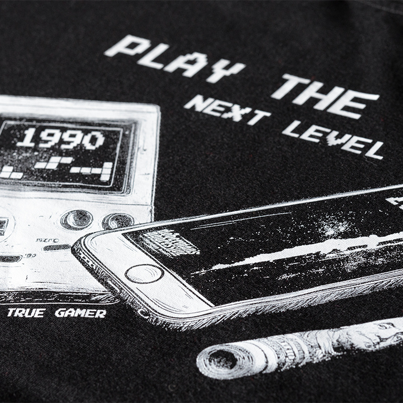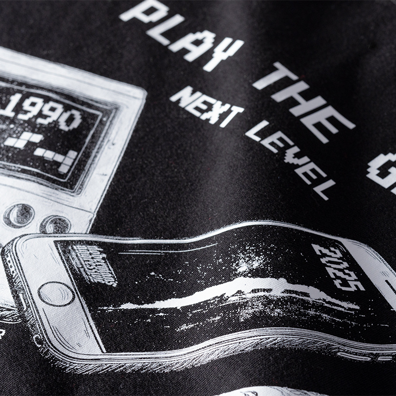A high-quality cotton sleeveless shirt providing comfort and breathability. The front features a striking retro-style print depicting a 1990s handheld console alongside a modern 2025 smartphone. Above the graphic, the phrase "PLAY THE GAME – NEXT LEVEL" emphasizes the evolution of technology and video games.