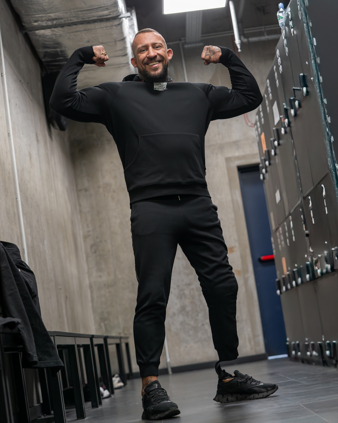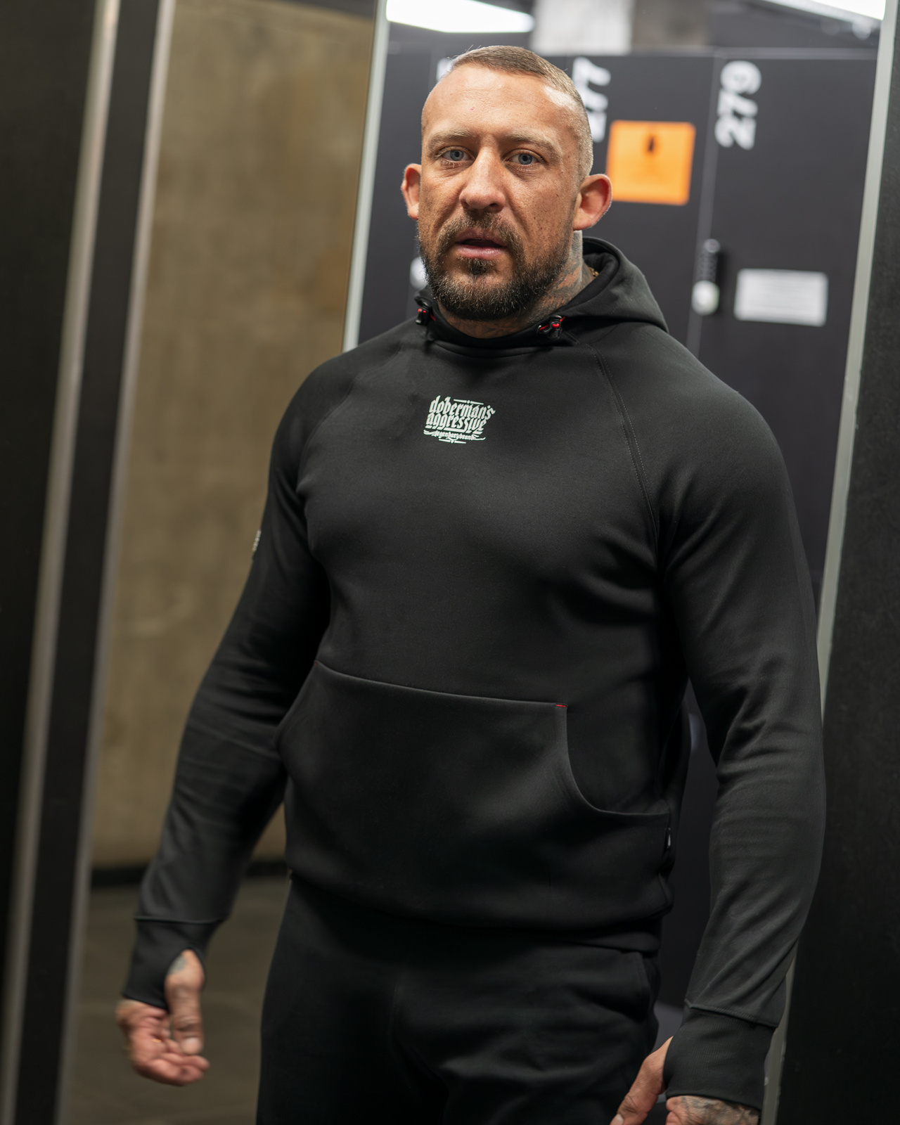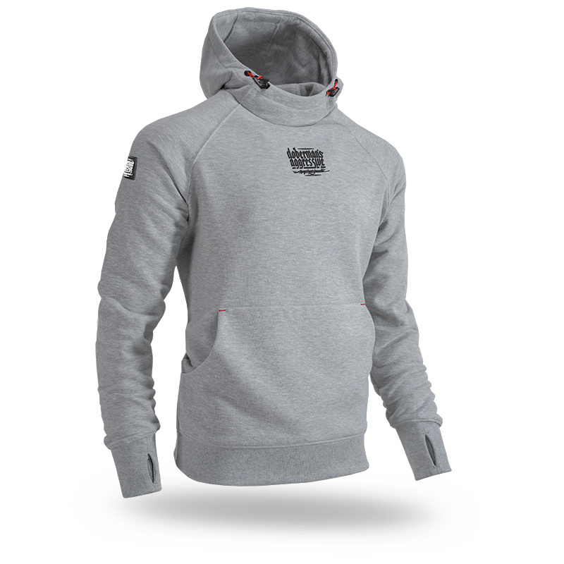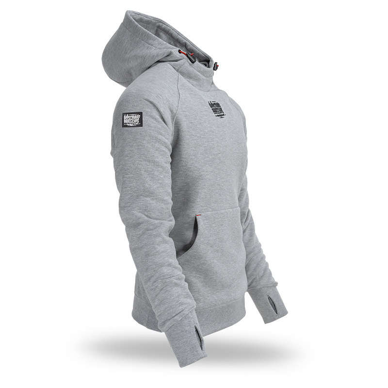 - Sportowa bluza męska regular fit z wysokim kołnierzem, kapturem i otworami na kciuki w rękawach.