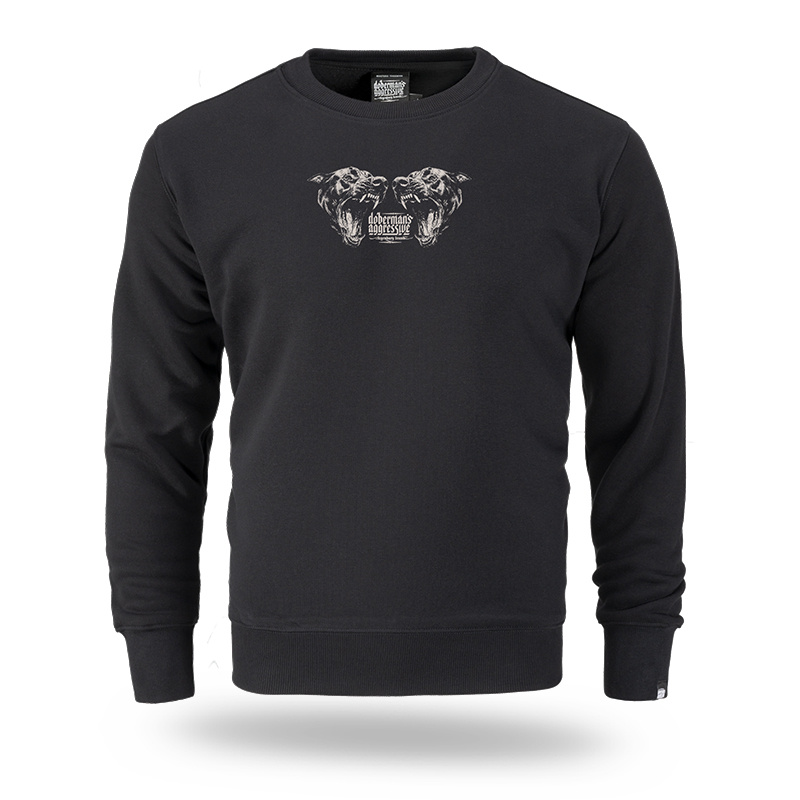 Model z odważnym nadrukiem na plecach, przedstawiającym dwa rozwścieczone dobermany i hasło „Dobermans off mad as hell”. Z przodu znajduje się mniejszy nadruk z tym samym motywem graficznym.