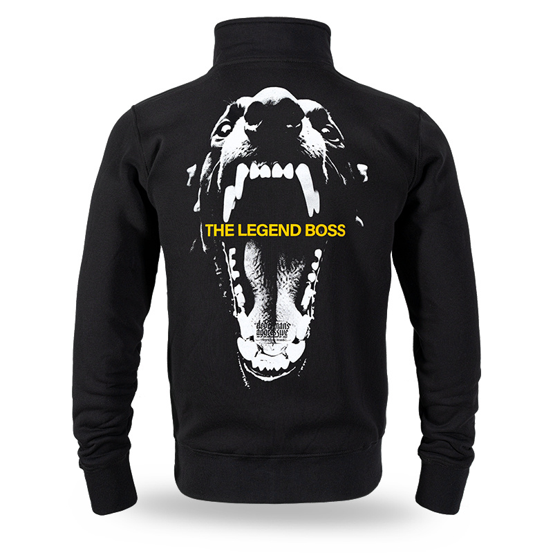 Na piersi umieszczony mały napis „THE LEGEND BOSS”, a tył zdobi duża grafika z otwartą paszczą psa oraz napisem „THE LEGEND BOSS” w kontrastującym kolorze. Produkt wykonany z wysokiej jakości bawełny, zapewniającej komfort noszenia.