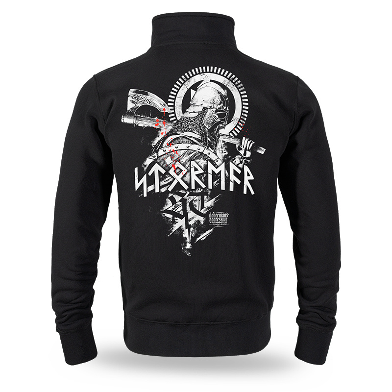 Model wyróżnia się efektownym nadrukiem na plecach przedstawiającym nordyckiego wojownika w hełmie, z tarczą i toporem w dłoniach. Projekt uzupełnia duży napis „STORMER” stylizowany na runiczny alfabet, który widnieje również z przodu na piersi.