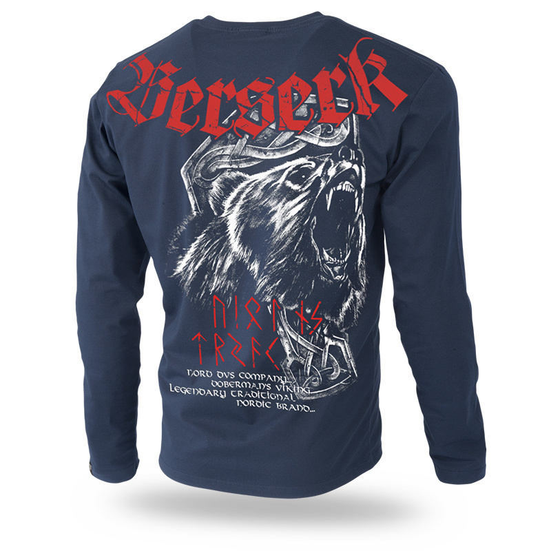 Wykorzystano wysokogatunkową tkaninę bawełnianą o gramaturze 200g. Standardowy męski fason ze ściągaczem i wewnętrzną lamówką przy szyi. Na plecach motyw niedźwiedzia oraz duży napis Berserk przechodzący przez szwy obu rekawów. Użyto gotyckiej czcionki i zastosowano efekt spękania nadruku. Wzór zajmuje znaczną powierzchnię produktu. Poniżej i na piersi dwa rzędy symboli runicznych.
