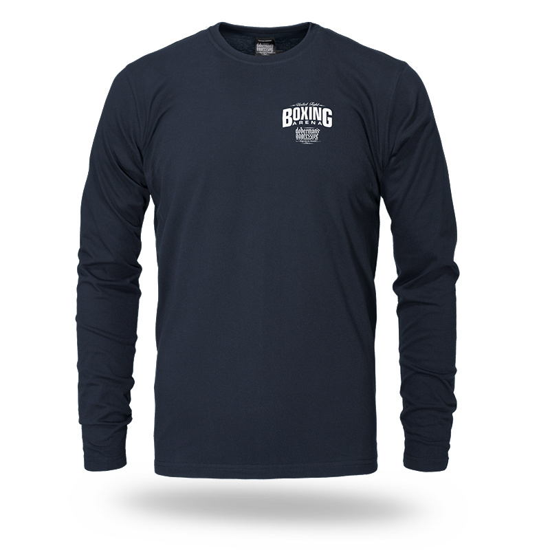 Model ze sportowym nadrukiem graficznym na plecach, przedstawiającym zaciśnięte rękawice MMA i napis Boxing Arena. W tle znajdują się mniejsze napisy: MMA, K1, KICKBOXING, BOXING. Na piersi umieszczony mniejszy nadruk nawiązujący do głównego motywu. Wygodny fason wykonany z bawełny wysokiej jakości. Model skierowany do osób trenujących sporty walki.