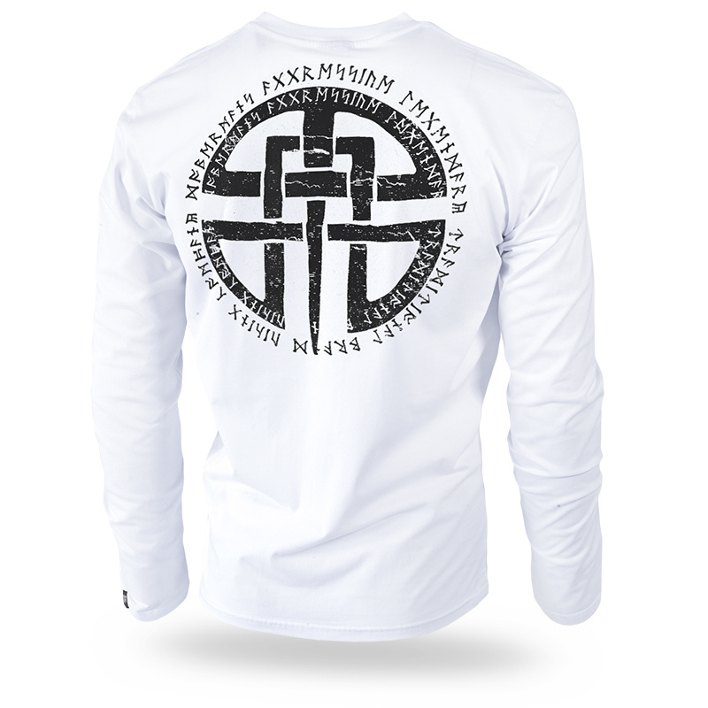 Na plecach celtycki symbol i elementy runiczne. Nadruk jednokolorowy, zajmujący dużą powierzchnię longsleeve'a. Widoczny efekt spękania. Na piersi powielenie symbolu w mniejszej skali. Koszulka posiada ściągacz przy szyi i boczną firmową wszywkę.